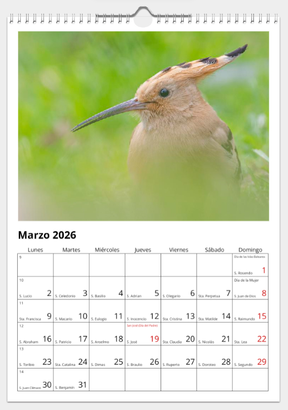 Calendario de pared doble A3 30x40 cm - COMPRANDO DOS LLÉVATELO POR SOLO 25,87 € - OTRAS AVES